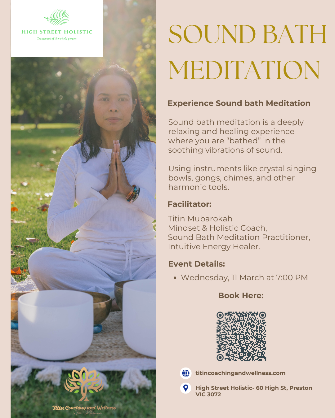 I’m so excited to share that I’ll be offering Sound Bath Meditation at High Street Holistic, Preston.